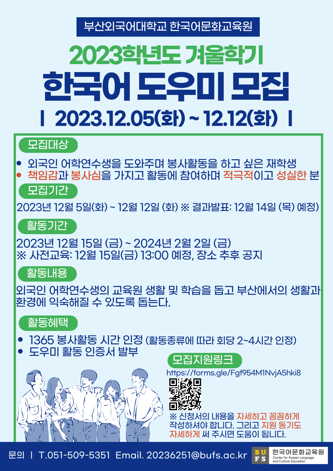 [한국어문화교육원] 2023학년도 겨울학기 한국어도우미 모집 안내