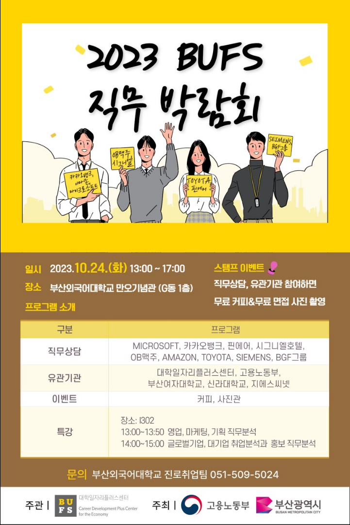 2023.10.24. 13:00부터 2023년 BUFS 직무박람회가 개최되어 안내드립니다.