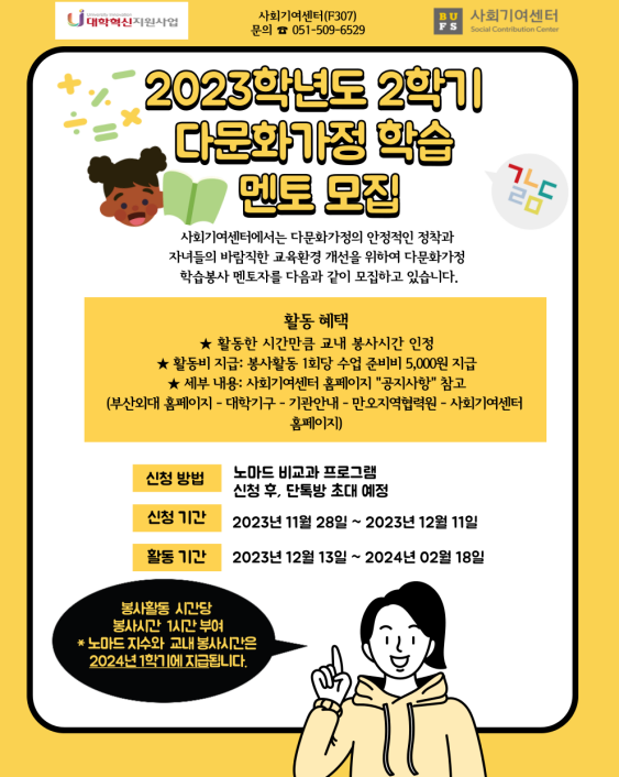 [사회기여센터] 2023학년도 2학기 다문화가정지원프로그램 멘토 모집